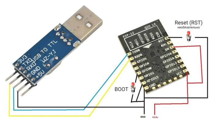 Инструкция подходит для ESP-12F, ESP-12E и ESP-12S. И для других ESP тоже, но там будут нюансы