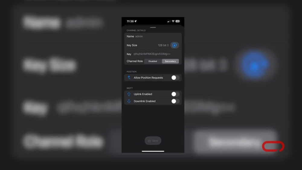 - Подключитесь к другому узлу Meshtastic и повторите процесс создания нового канала с именем «admin». Используйте тот же ключ, сгенерированный ранее.