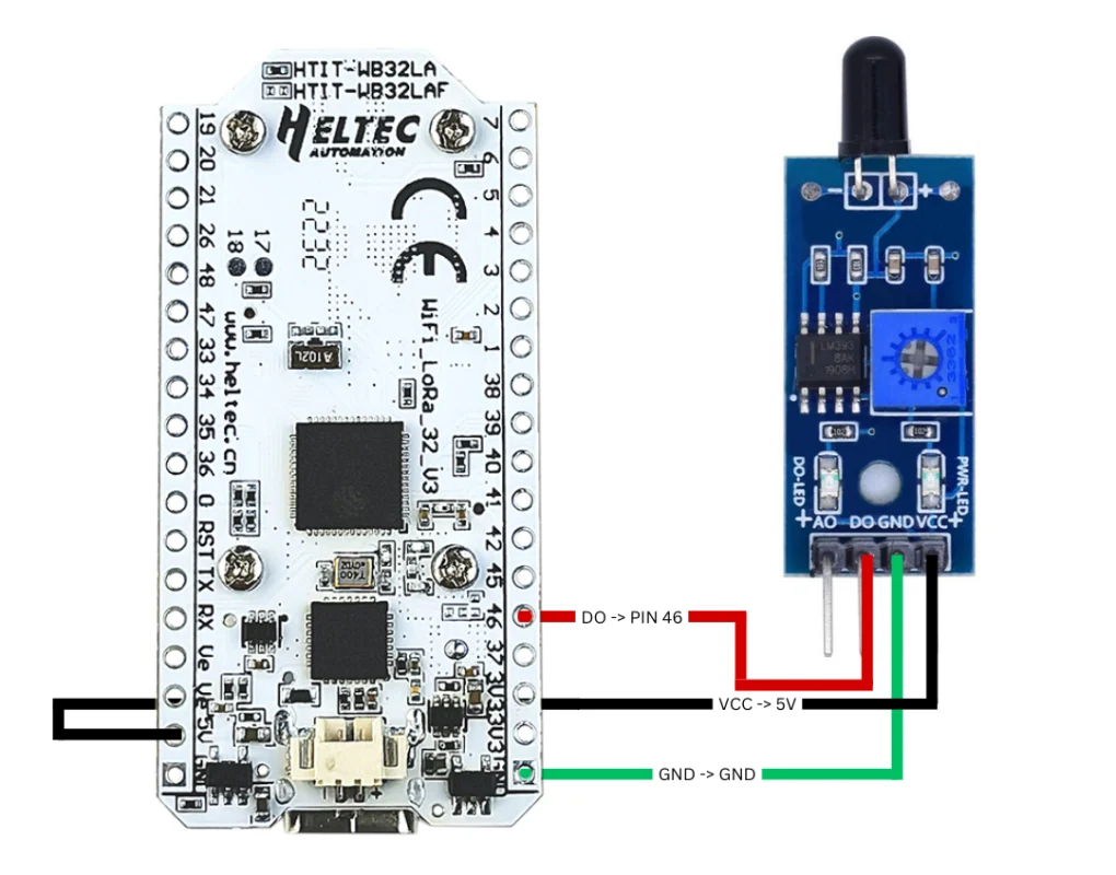 LM393 IR Flame Detection Sensor 5V — Heltec Lora v3