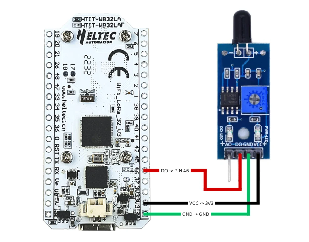 LM393 IR Flame Detection Sensor 3V — Heltec Lora v3
