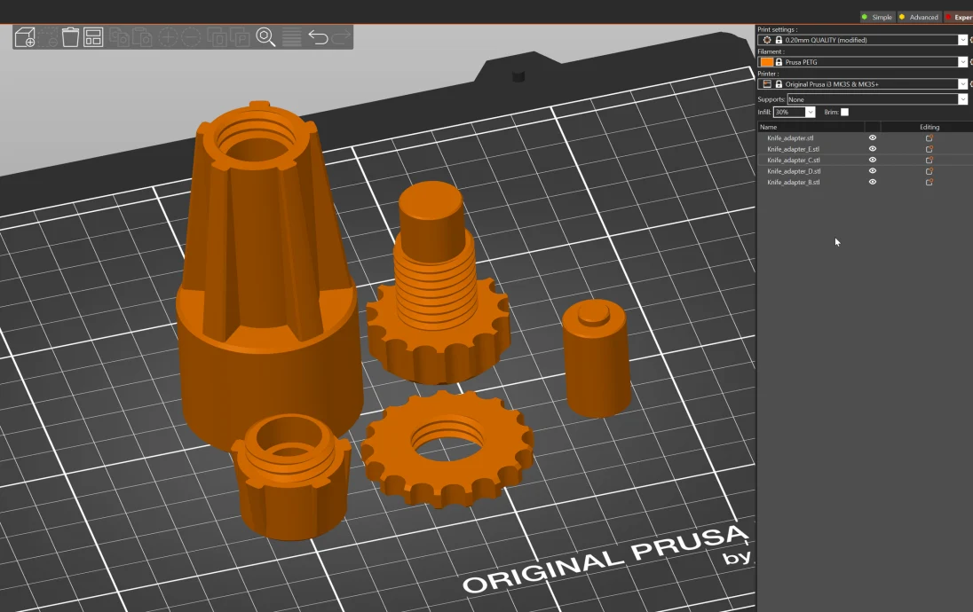 На скриншотах из программы-слайсера видно количество отдельных компонентов (в списке справа под настройками печати) и ориентацию деталей на печатной платформе.