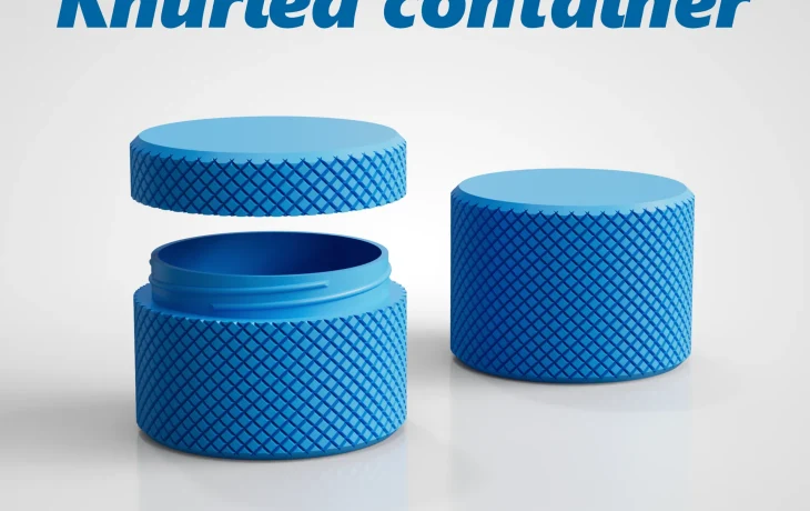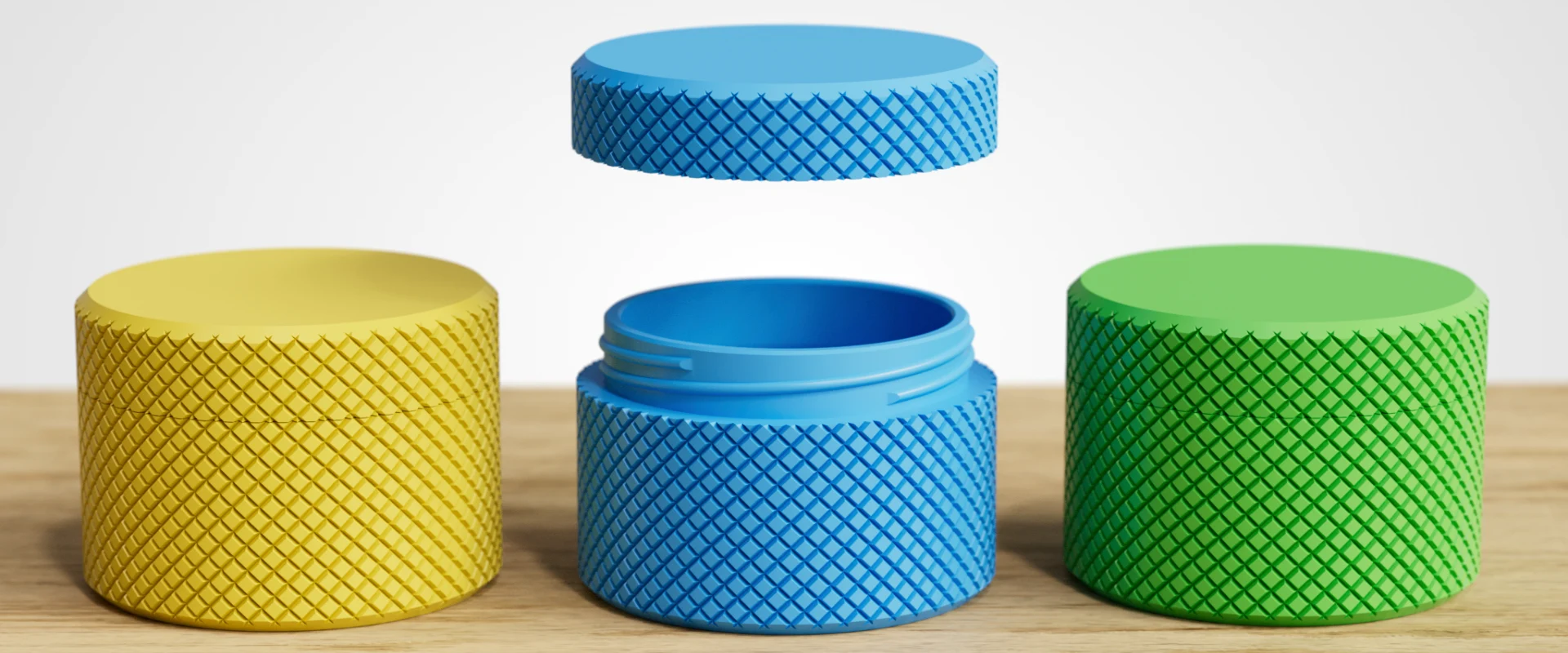 Это 3D-печатный контейнер с завинчивающейся крышкой, поверхность которой имеет накатку (перекрестные штрихи) для лучшего захвата. Простой цилиндрический дизайн делает его идеальным для повседневного использования, его легко открывать и закрывать.