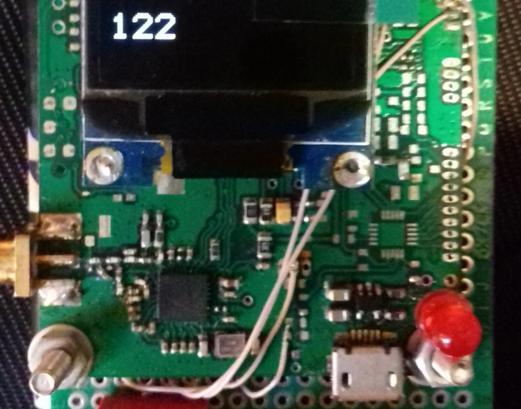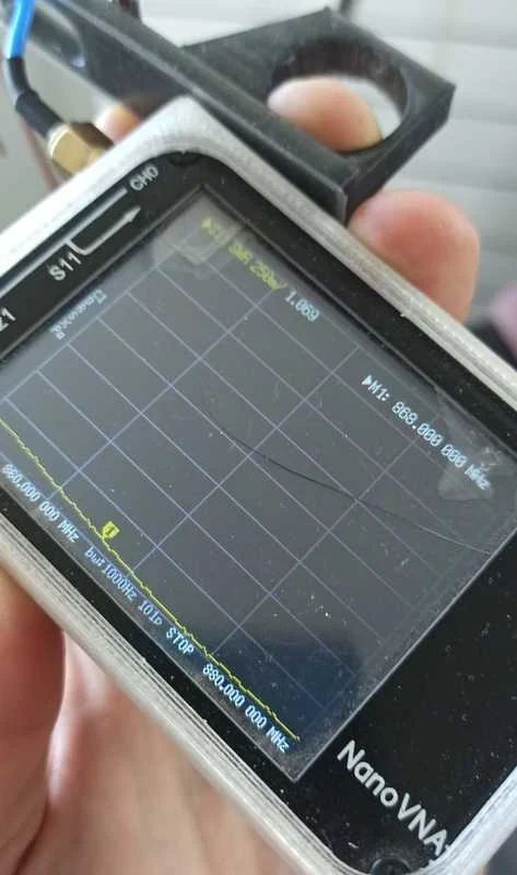 При полевых испытаниях при помощи измерителя уровня на м/м CC1120 (фото ниже) был получен Ку ~9 dB по сравнению с четвертьволновым штырём. Измеренный КСВ при помощи прибора N1201SA практически совпадает с расчетным.
