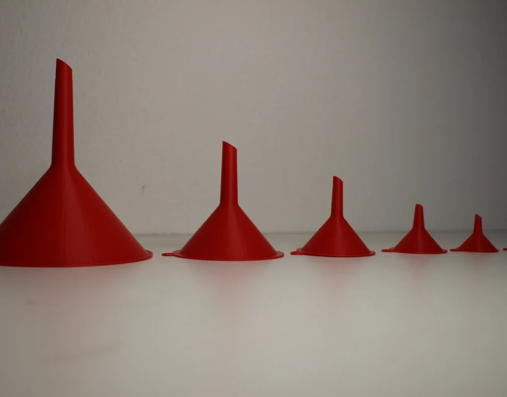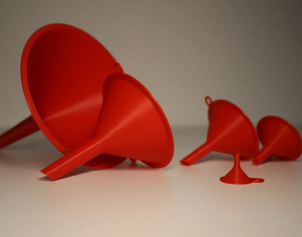 Набор включает в себя несколько размеров, подходящих для любых задач, от мелких кухонных дел до проектов в мастерской. Каждая воронка разработана для удобной 3D-печати и имеет гладкую внутреннюю поверхность для быстрого и чистого переливания жидкостей, порошков или гранул. Компактная конструкция включает в себя петлю для подвешивания, что удобно для хранения.