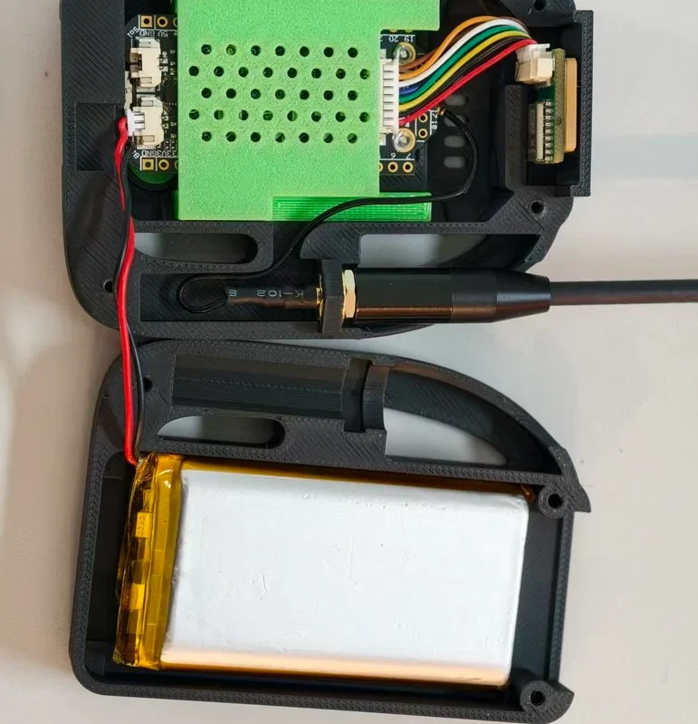 Он включает в себя батарею емкостью 3000 мАч, антенну и печатную плату WiFi LoRa 32 (V4).