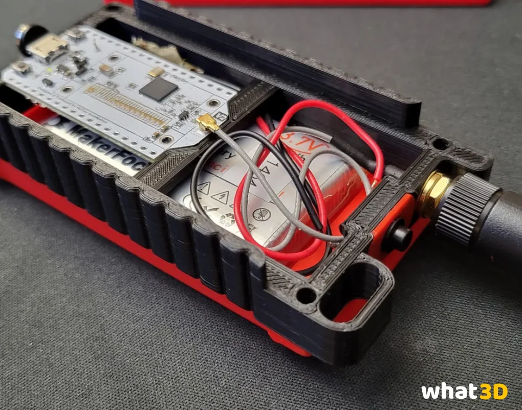 ДВАЖДЫ ПРОВЕРЬТЕ, ЧТО ВАША АНТЕННА WIFI/BLUETOOTH НЕ СЛОМАЕТСЯ ПРИ УСТАНОВКЕ ПЕРЕДНЕЙ ЧАСТИ КОРПУСА/ВСТАВКИ ЭКРАНА. Крошечная спиралевидная медная антенна на плате Heltec LoRa 32 может легко сломаться, если ее не ОСТОРОЖНО отогнуть в сторону перед установкой передней части корпуса. Вставка экрана должна иметь достаточно места для размещения крошечной антенны, но производственные отклонения могут повлиять на расположение, размер, угол наклона антенны и т. д.