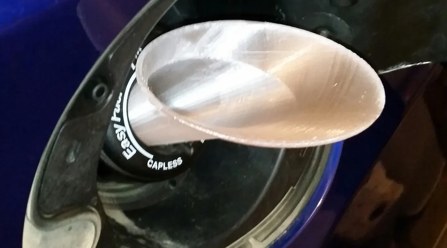 Она разработана так, чтобы работать точно так же, как стандартная воронка Ford. Геометрия очень похожа, за исключением того, что я сделал горловину воронки шире, чтобы избежать проливания. Я также не увидел большого смысла в зажиме, который есть на оригинале.
