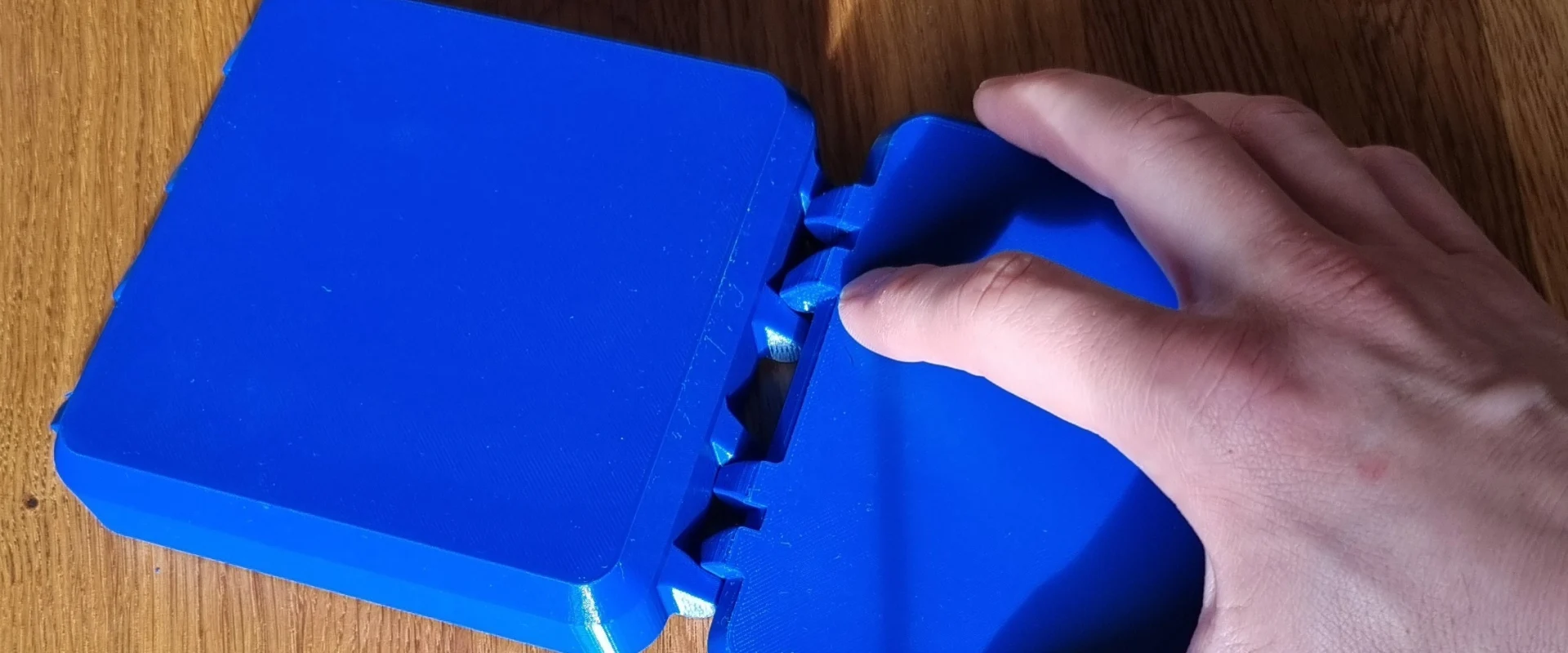 Просто убедитесь, что вы установили их в правильном положении, чтобы коробка легко открывалась. Сторона, которая была на печатной платформе, должна быть обращена наружу: