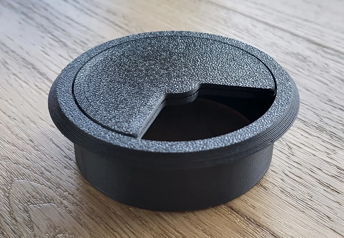 Кабельная втулка, которую можно использовать для закрытия отверстий, просверленных кольцевой пилой для прохождения кабелей. Поскольку она является параметрической, даже если нужный размер недоступен, вы можете просто изменить параметры, чтобы точно соответствовать диаметру и глубине отверстия! После просверливания отверстия вставьте в него напечатанное кольцо, пропустите через него кабели, соедините нижний и верхний диски, а затем закрепите диски в кольце. Диски плотно прилегают и не выпадают сами по себе. Вы можете поворачивать верхний диск, чтобы закрыть отверстие настолько, насколько это необходимо, скрывая отверстие и предотвращая попадание пыли. Его можно использовать со столами, письменными столами, полками и другой мебелью.