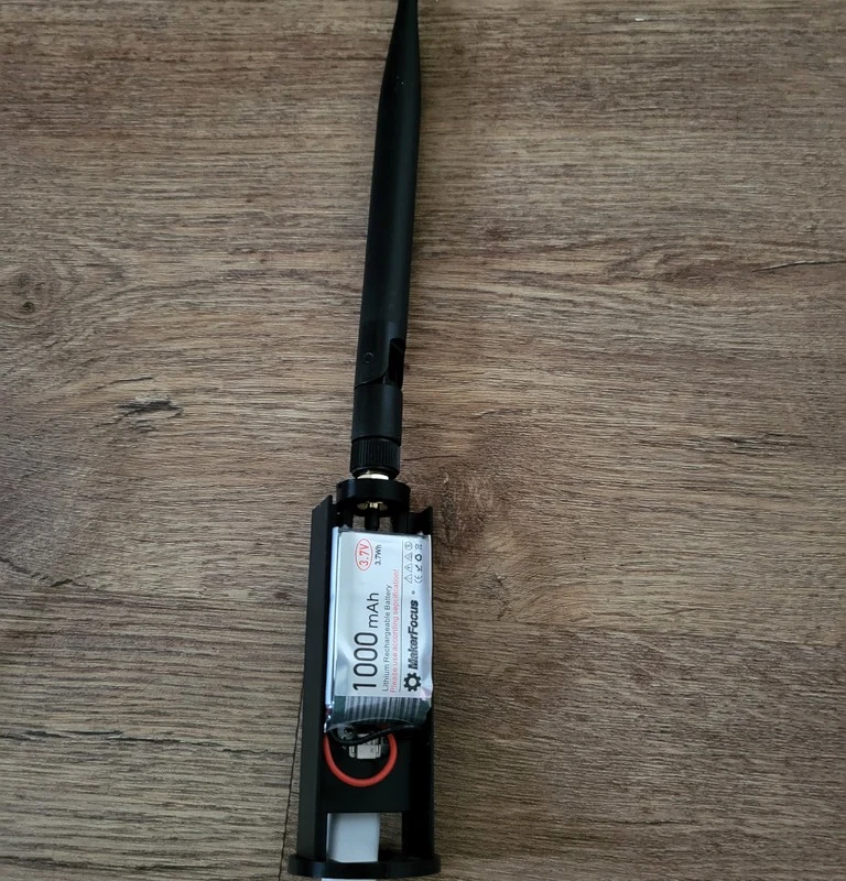 Длина 80 мм, держатель антенны отдельный. Может использоваться в любом направлении с внешней или внутренней антенной.
