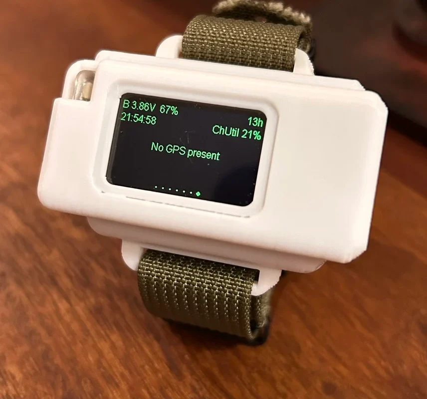 При печати корпуса рекомендуется использовать вертикальную печать с опорами и разместить USB-порт сверху. С нетерпением жду вашего мнения об этом. У меня он работает отлично. При сборке часов обратите внимание, что эту батарею необходимо переподключить с помощью провода, поставляемого с T114. Корпус имеет выемку для антенны, поместите антенну в выемку, затем вставьте T114 в корпус, после чего вставьте батарею и закрепите заднюю крышку, чтобы все осталось на месте. Очень простая конструкция и сборка. Хорошим дополнением может быть небольшой вибромотор для уведомлений о сообщениях. Мне нравится крепить ремешок так, чтобы при поднятии руки антенна находилась в вертикальном положении.