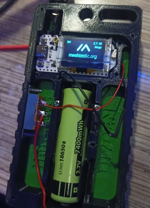Корпус узла Meshtastic основан на модуле Heltec V3 с литий-ионной батареей 18650 3,7 В 7400 мВтч и батарейным отсеком. Для отсоединения батареи используется переключатель типа KBB, а детали корпуса крепятся саморезами 2,2*6 и нитью Pet-G.