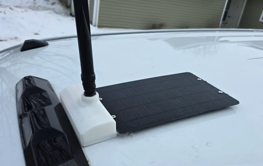 Закрепил аккумуляторную батарею и GPS с помощью двустороннего скотча и приклеил антенный кабель горячим клеем, чтобы он не отскочил. Использовал небольшое количество силикона, чтобы сделать водонепроницаемым место, где входит провод солнечной панели, и обернул антенну сверху, чтобы она не ржавела.