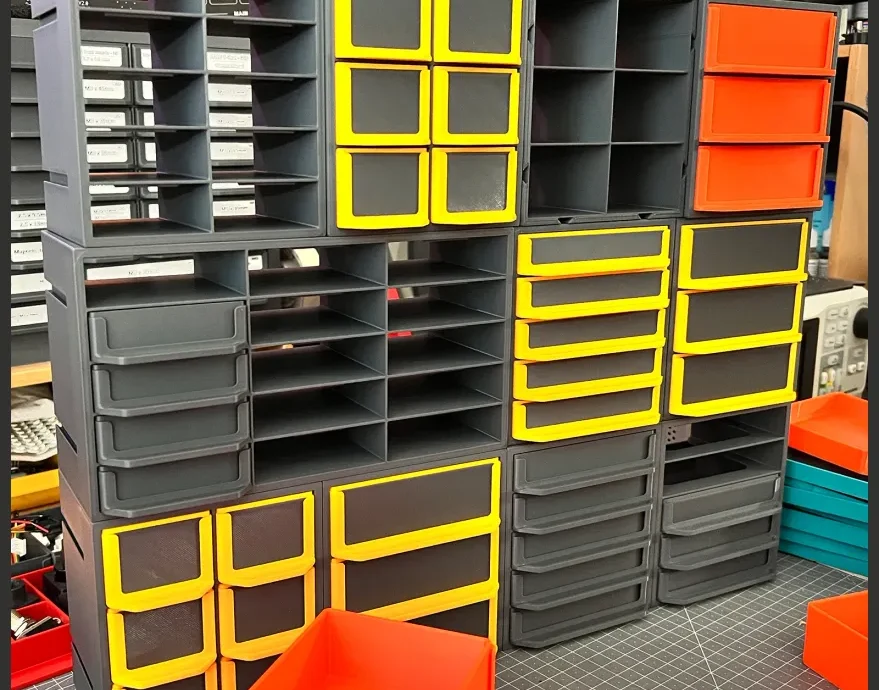 Все элементы имеют жесткие допуски по конструкции и специально! Мне нужно было что-то прочное, без дребезжания и выпадающих элементов/ящиков. Мои принтеры точно настроены и производят детали с высокой точностью размеров, поэтому у меня нет проблем с подгонкой деталей, как положено, плотно, но очень гладко. Пожалуйста, имейте это в виду, если ваш принтер не настроен должным образом, или, по крайней мере, убедитесь, что он не переэкструдирует слишком сильно. НИКАКИЕ ДЕТАЛИ не требуют шлифовки или какой-либо последующей обработки, чтобы хорошо подходить! При наклоне элементов ящики должны выдвигаться плавно, без заклинивания или застревания с любой стороны. НЕ меняйте ориентацию деталей при импорте в слайсер, все STL-файлы уже имеют правильную ориентацию для печати! Все детали имеют фаску 0,4 мм на поверхностях, соприкасающихся с печатной платформой, для компенсации «слоновьей лапы», однако, если вы слишком сильно сдавливаете первый слой, вокруг него может образоваться «ободок», который будет мешать ящикам плавно выдвигаться в элементы.