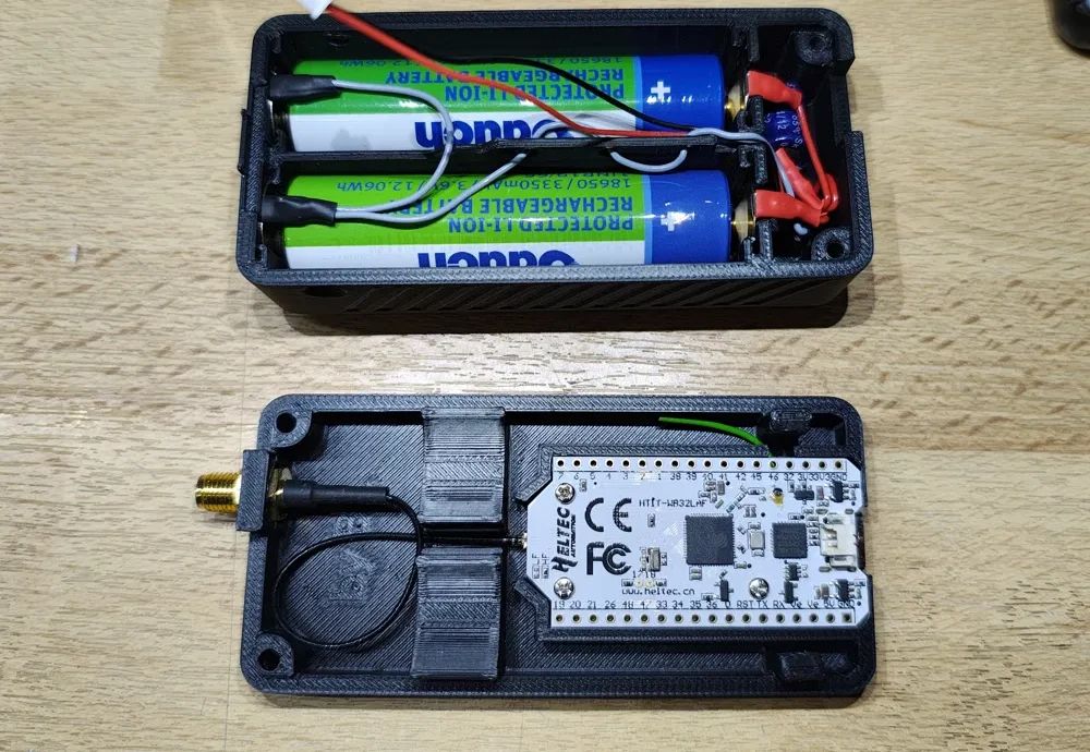 Этот корпус предназначен для платы разработчика HeltecV3 LoRa, которая широко используется в системах MeshCore или Meshtastic. Корпус имеет два отсека для двух защищенных литиевых элементов питания 18650. Он отличается прочностью и простотой в использовании, а глубоко утопленные кнопки предотвращают случайное нажатие при переноске в рюкзаке. Большая емкость батареи, составляющая около 24 Вт·ч, обеспечит питание на 32+ часа, в зависимости от прошивки и режима использования. Это делает его отличным вариантом для поездок, так как вам не придется беспокоиться о зарядке в течение дня.