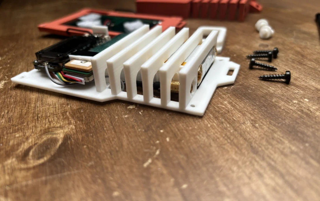Перед тем как прикручивать заднюю панель, проденьте крепление антенны через монтажную плату и крышку. Вам понадобятся 4 острых винта M3 длиной не более 15 мм.