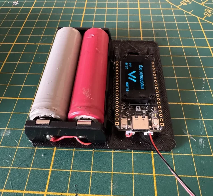 Я изготовил эту небольшую платформу для батарей 18650 и платы Heltec V4, чтобы всё было аккуратно и поместилось в металлический корпус, купленный на AliExpress.