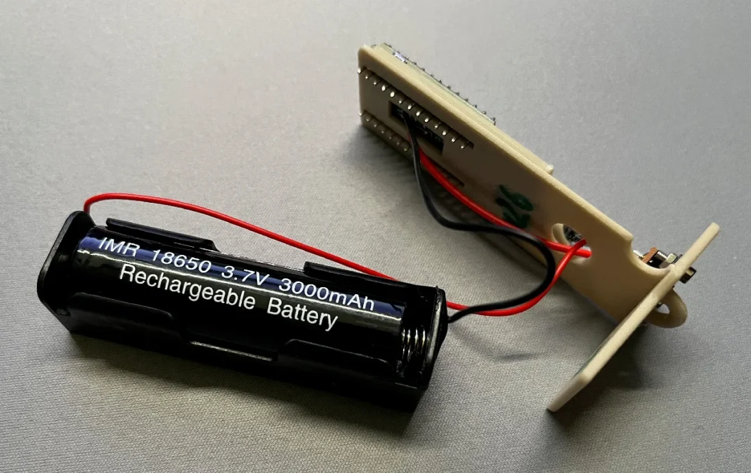 12: после пайки всех элементов можно осторожно вставить батарею в отверстие и установить полку на место; когда вы продвинетесь наполовину, можно подключить разъемы JST и продолжить закрытие корпуса