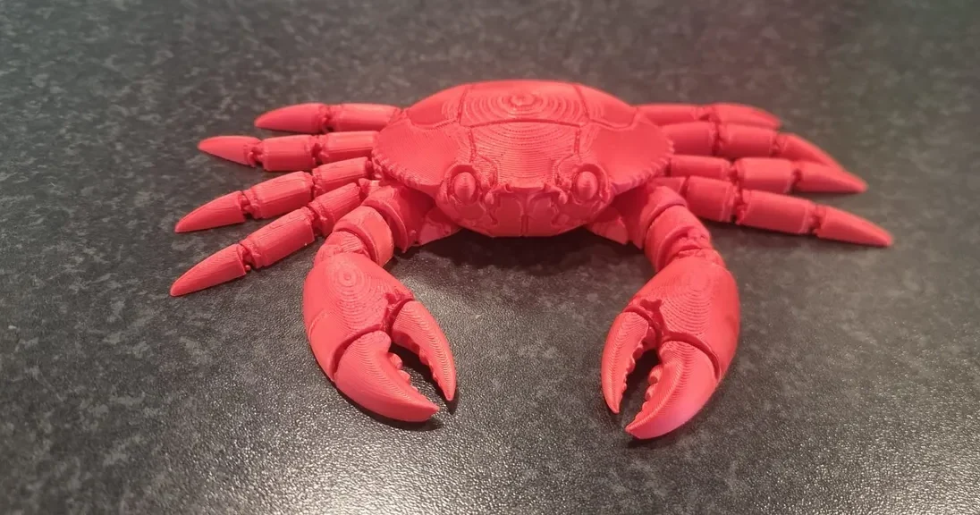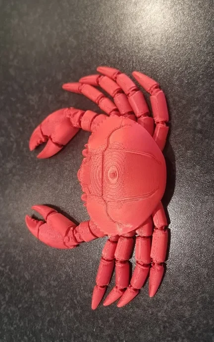 На панцире (карапаксе) прослеживаются четкие линии топографических слоев, подчеркивающие его округлую форму и придающие ему стилизованный, бронированный вид. Модель даже имеет небольшие выступающие глазные стебельки и текстурированные зазубрины на внутренней стороне клешней.