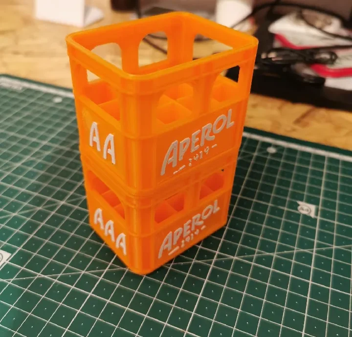 Модель ящика можно найти например здесь https://what3d.ru/news/19-boks-dlja-batareek-pivnoi-jaschik-aaaaa9v18650-shtabeliruemyi.html или на сайтах Printables или Thingiverse. Изначально я использовал версию с Thingiverse.