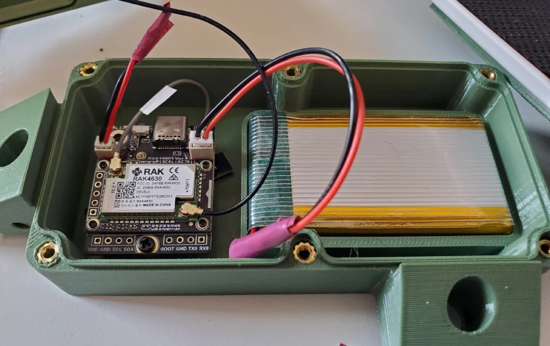 Используйте вставные болты M3 в корпусе и уплотнительную ленту 1,2 мм в пазах крышки, чтобы создать водонепроницаемый корпус. Я также заделал отверстие для прохождения кабеля питания антенны.