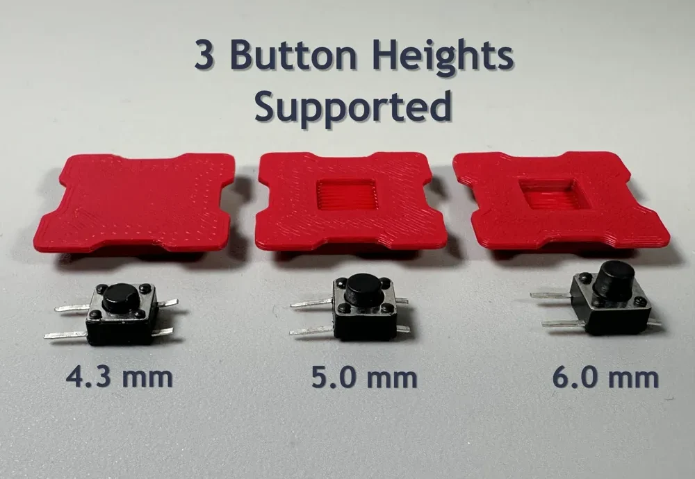 Поддерживаемые высоты тактильных кнопок: 4,3 мм; 5 мм; 6 мм