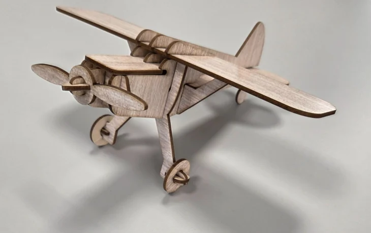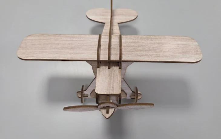 Декоративная модель старинного биплана, выполненная в стиле конструктора. Детали легко собираются без клея, а готовая модель станет стильным украшением интерьера или оригинальным подарком любителям авиации.