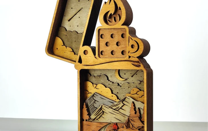 📁 Панно многослойное «Зажигалка с пейзажем гор»