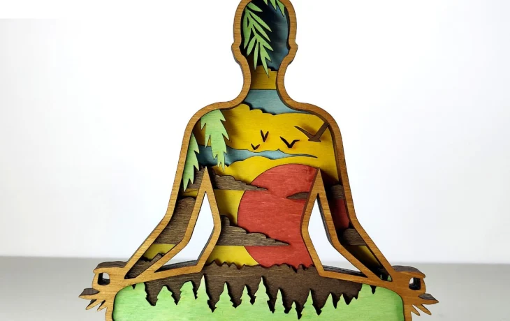 🌅 Элегантное панно с изображением девушки в позе лотоса на фоне живописного заката. Многослойная конструкция создаёт эффект глубины и объёма, превращая композицию в выразительный элемент декора. Отлично подходит для интерьера в стиле дзен, йога-студии или уютного уголка дома.