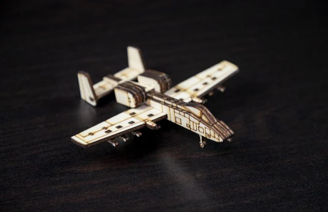 Сборная модель легендарного штурмовика A-10 «Warthog». Отличный вариант для любителей военной авиации, коллекционеров и тех, кто обожает необычные 3D-конструкторы из дерева. Собирается без клея, можно оставить в натуральном виде или раскрасить акриловыми красками.