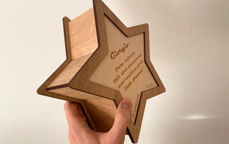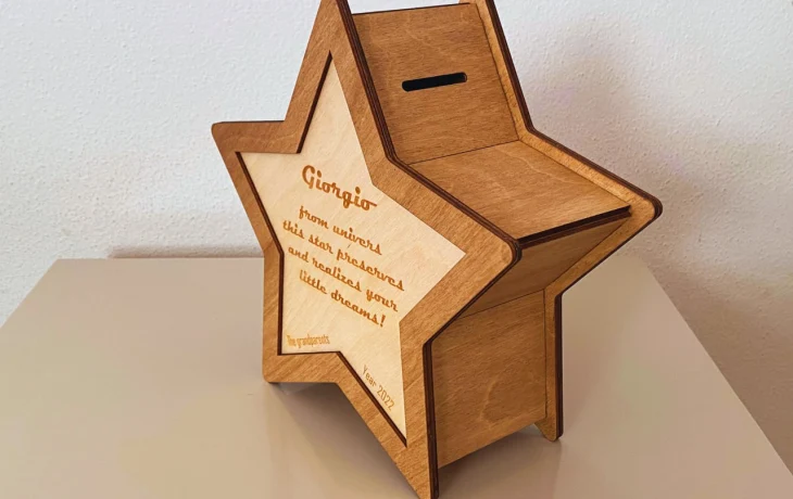 Эта необычная копилка в виде звезды станет не только функциональной, но и стильной деталью интерьера. На лицевой стороне можно выгравировать или вырезать имя владельца, превращая её в уникальный и памятный подарок. Подходит для хранения монет и купюр, легко собирается без клея.
