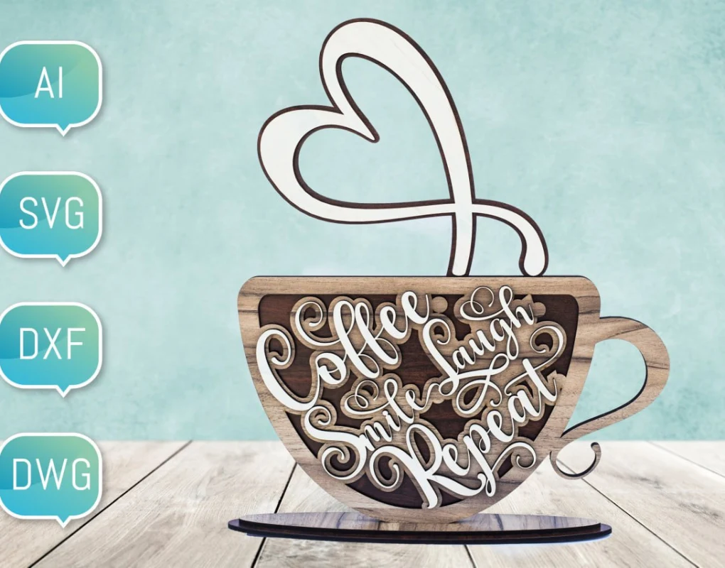 🌿 Лаконичный дизайн чашки кофе — универсальный элемент для декора кухни, кафе, упаковки или подарков. Подходит для гравировки, вырезки и оформления интерьерных композиций.