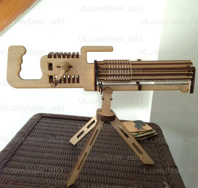 🔫 Модель легендарного минигана из фанеры — вращающийся блок стволов, брутальный дизайн и максимум удовольствия от сборки. Подойдёт для коллекционеров, косплея и декора мастерской.