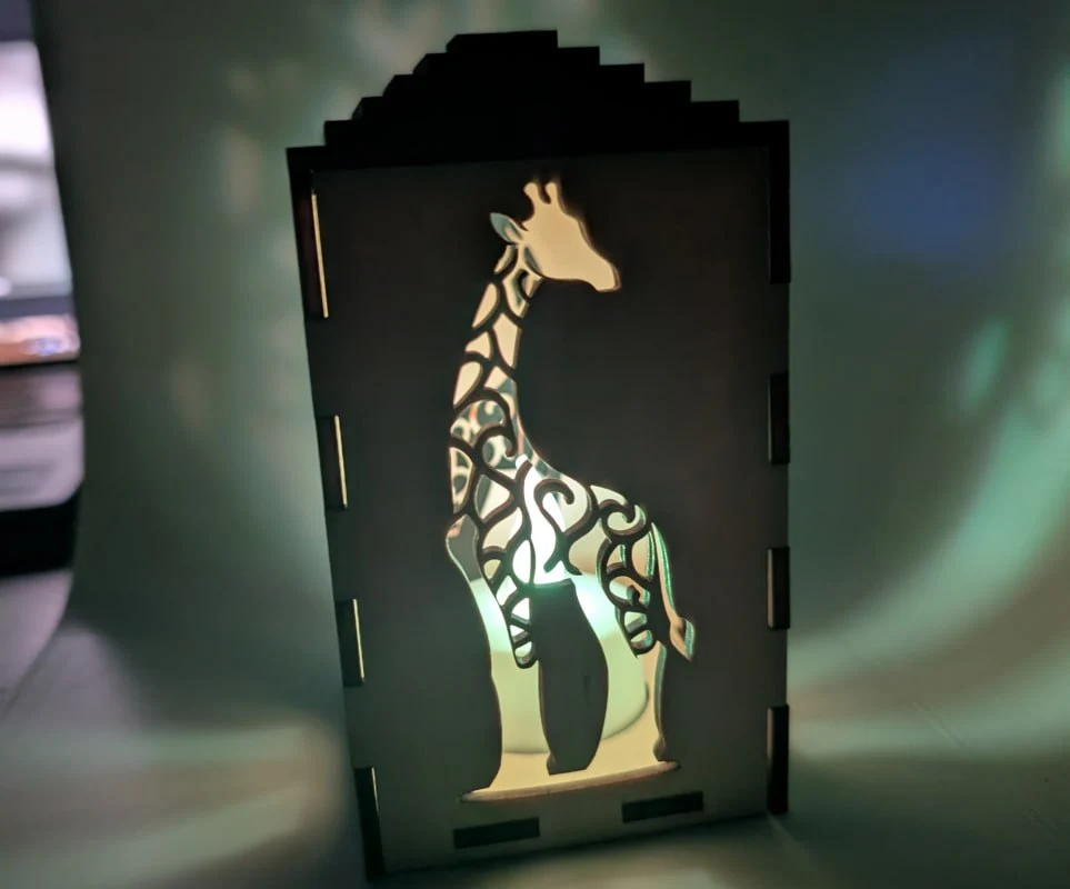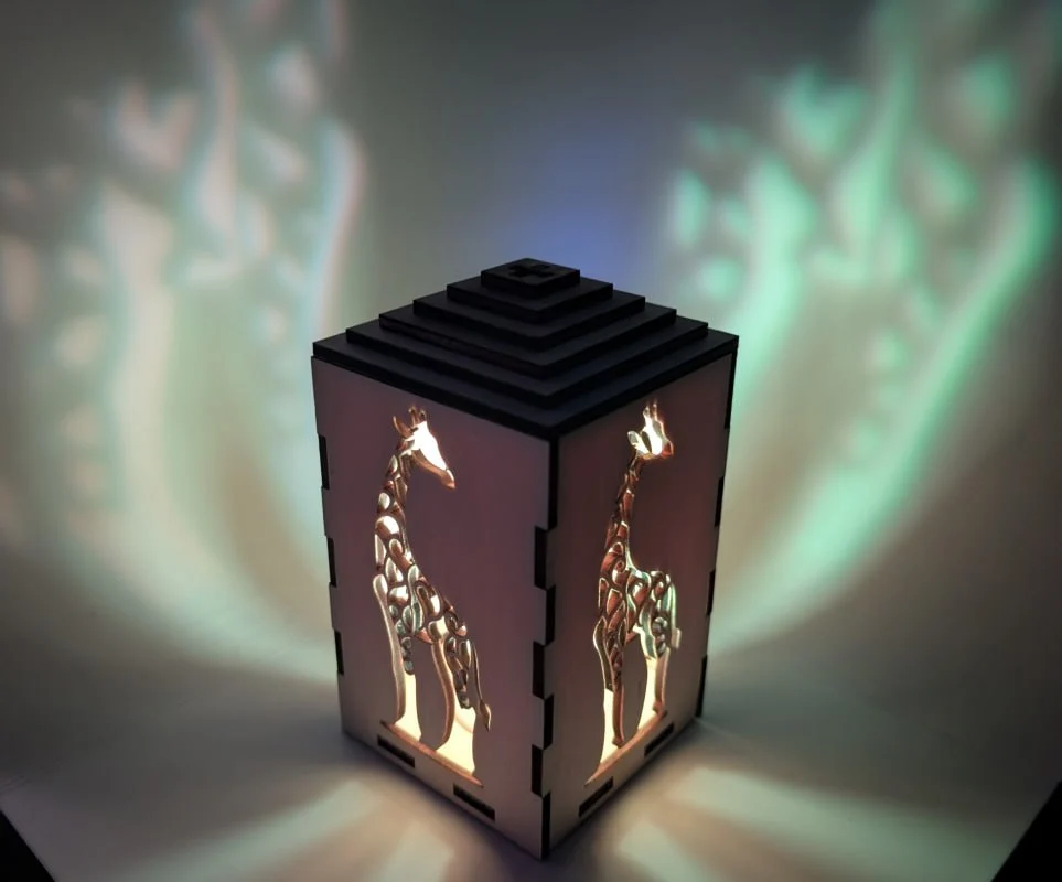 🦒 Атмосферный фонарь с гравировкой жирафа — тёплый свет и уютный акцент для интерьера.