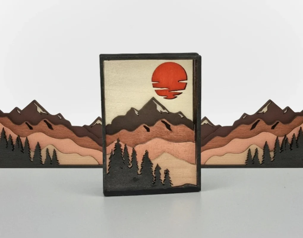 🏔🌲 Многослойная диорама с горными панелями, лесом и глубиной — создаёт эффект перспективы и объёма. Идеально для настенного декора, подсветки (backlight) и подарков любителям природы. Лёгкая сборка, отлично подходит для гравировки и покраски.