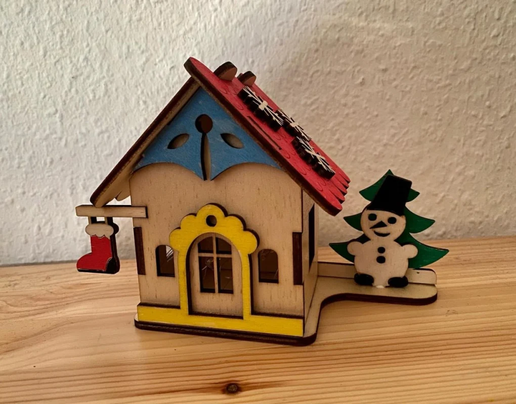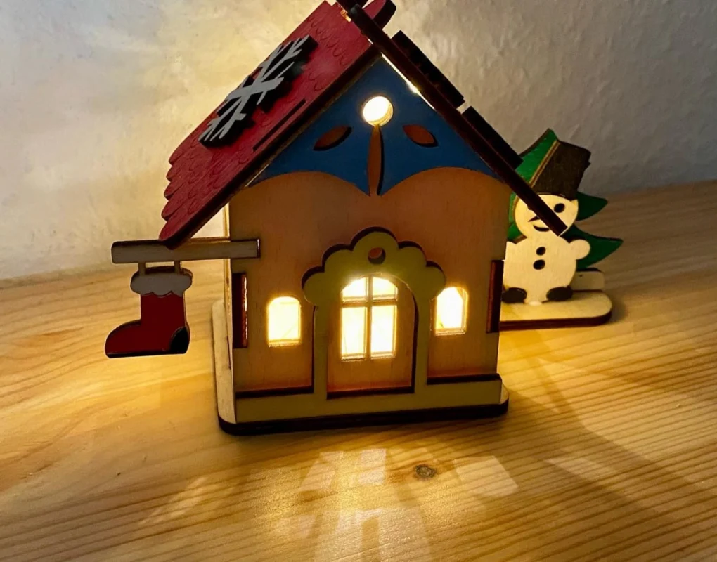 🏠❄️ Уютный зимний домик с возможностью установки подсветки — создаёт тёплую атмосферу на подоконнике, в витрине или новогоднем декоре. Подходит для сборки, гравировки и раскрашивания.